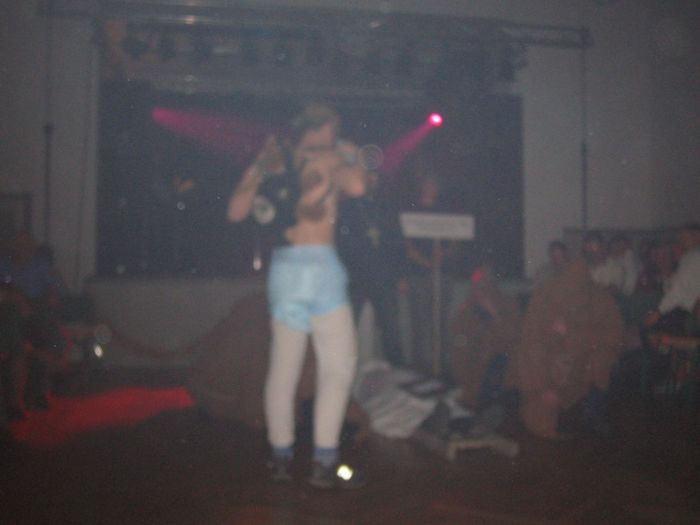 Das Vorprogramm umfasste die Auferstehung eines Kirmesburschen, der auf einer Leiter zusammen mit der auf ihm liegenden Kirmesrede in den Saal getragen wurde.